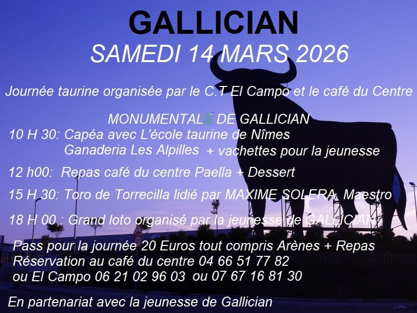 Nous vous attendons nombreux le 14 Mars 2026 pour une journée taurine.